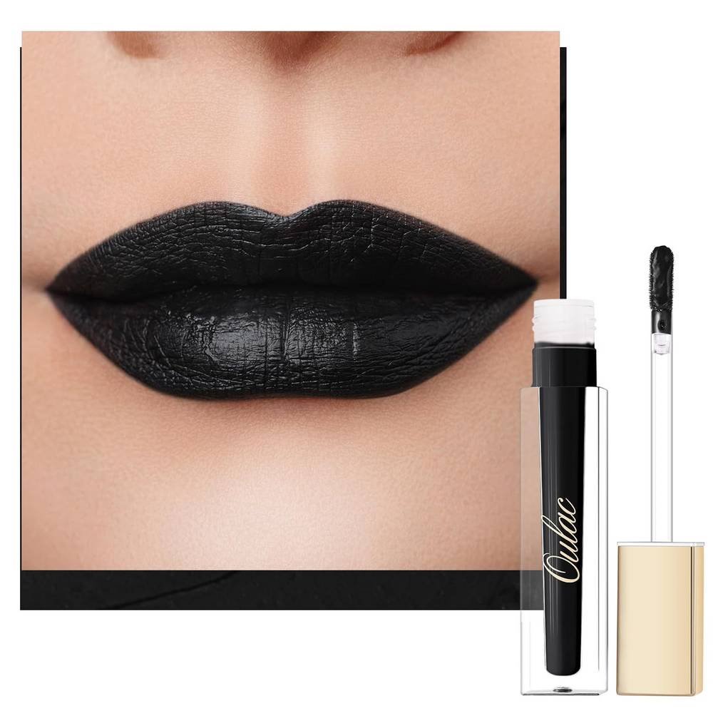 Oulac Liquid Matte Black 4,5 ml (M23) La textura suave y cremosa crea instantáneamente un cómodo acabado mate y le da a los labios un color negro intenso y brillante.